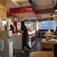 그에 반해 실내는 옛스러움과 깔끔한 메뉴판과 베너 홍보판넬이 어울어진 과거와 현재가 공존하는 곳이다.